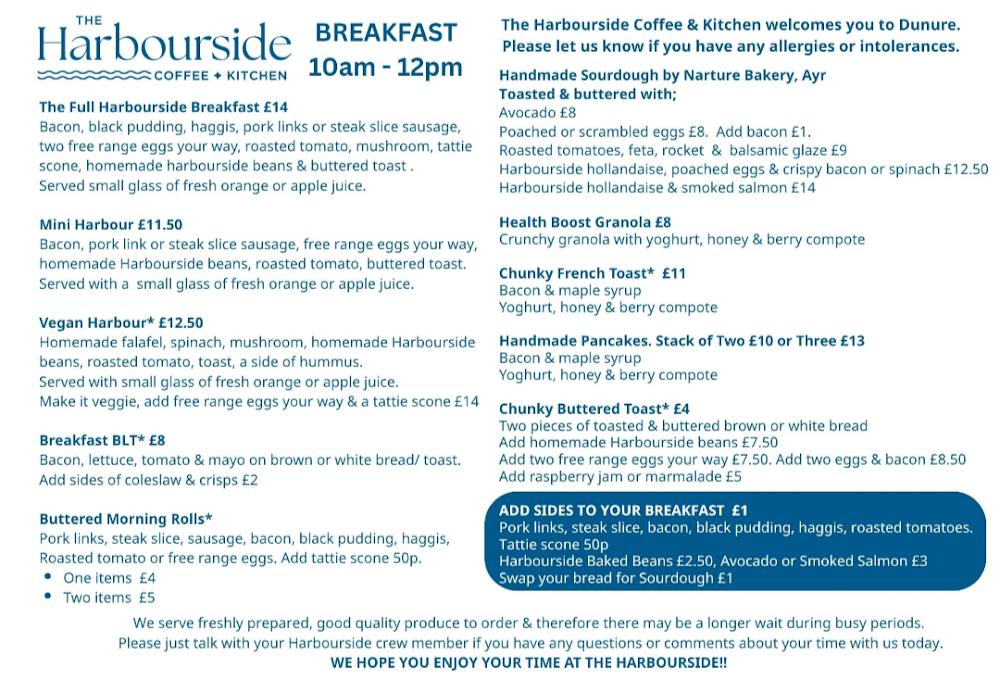 Located at 19 Harbour View, Dunure, Ayr, The Harbourside Coffee & Kitchen is not just a café; it's an experience. The interior radiates warmth, providing a cozy escape from the hustle of daily life. Regulars enjoy the homey feel that makes them feel like part of the community.